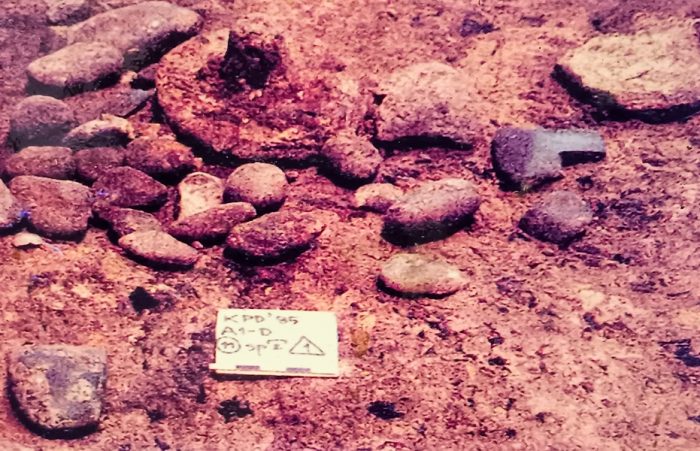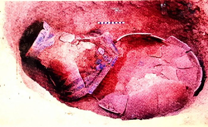 ภาชนะดินเผา ภาชนะดินเผาขนาดใหญ่ ๒ ใบ ฝั่งอยู่ในหลุมรูปวงกลม เมื่อเปิดภาชนะดินเผาทั้งสองใบ พบว่าภายในบรรจุศพทารก (ศพที่ ๑๔) พร้อมด้วยภาชนะดินเผาสีดำขัดมัน ที่บริเวณข้อเท้าของทารก ข้อมูลจาก: พิพิธภัณฑ์อุทกมรดกท้องถิ่น แผนที่
