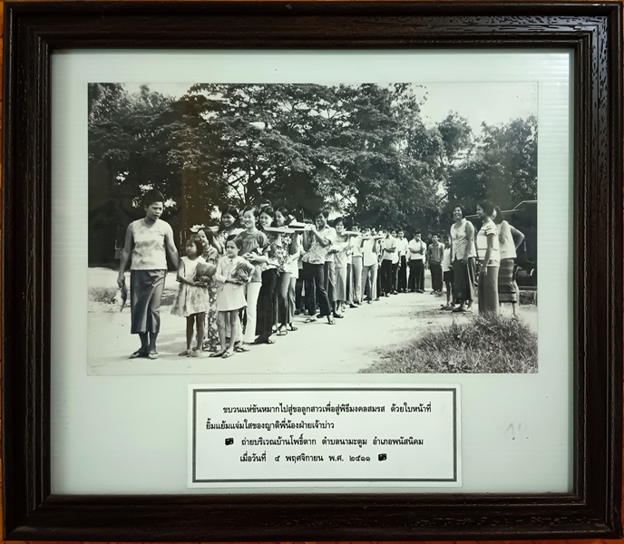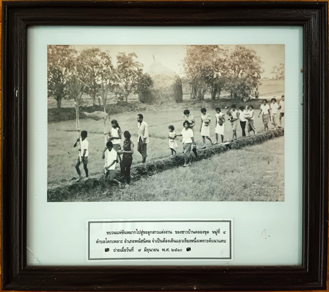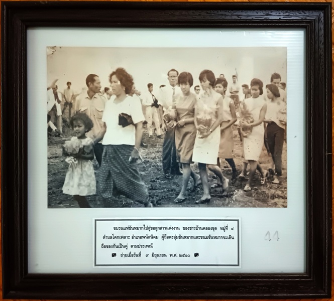 ขบวนแห่ขันหมาก ชาวบ้านคลองขุด ข้อมูลจาก: พิพิธภัณฑ์อุทกมรดกท้องถิ่น ขบวนแห่ขันหมากไปสู่ขอลูกสาวแต่งงาน ของชาวบ้านคลองขุด หมู่ที่ ๔ ตำบลโคกเพลาะ อำเภอพนัสนิคม จำเป็นต้องเดินแถวเรียงหนึ่งเพราะคันนาแคบ ถ่ายเมื่อวันที่ ๙ มิถุนายน พ.ศ. ๒๕๑๐