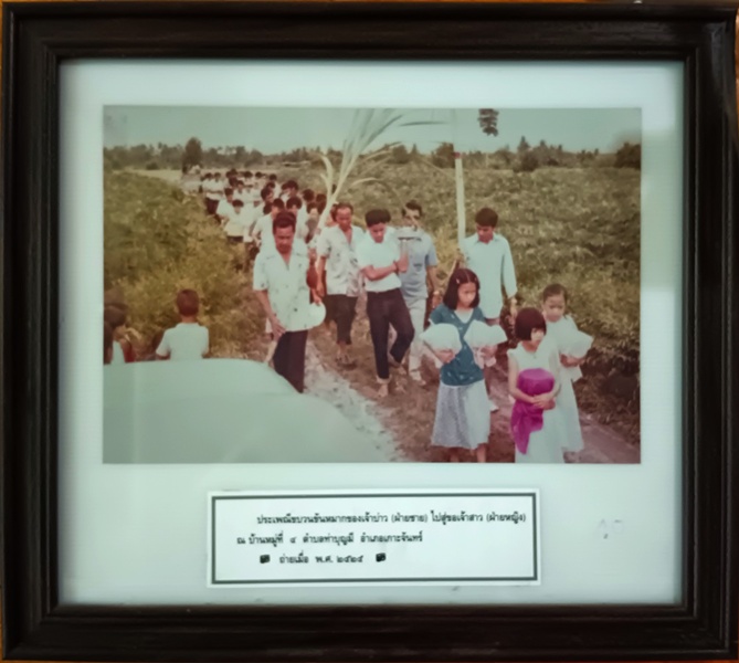 ขบวนขันหมากฝ่ายเจ้าบ่าว ข้อมูลจาก: พิพิธภัณฑ์อุทกมรดกท้องถิ่น ประเพณีขบวนขันหมากของเจ้าบ่าว (ฝ่ายชาย) ไปสู่ขอเจ้าสาว (ฝ่ายหญิง) ณ บ้านหมู่ที่ ๔ ตำบลท่าบุญมี อำเภอเกาะจันทร์ ถ่ายเมื่อ พ.ศ. ๒๕๒๕ แผนที่