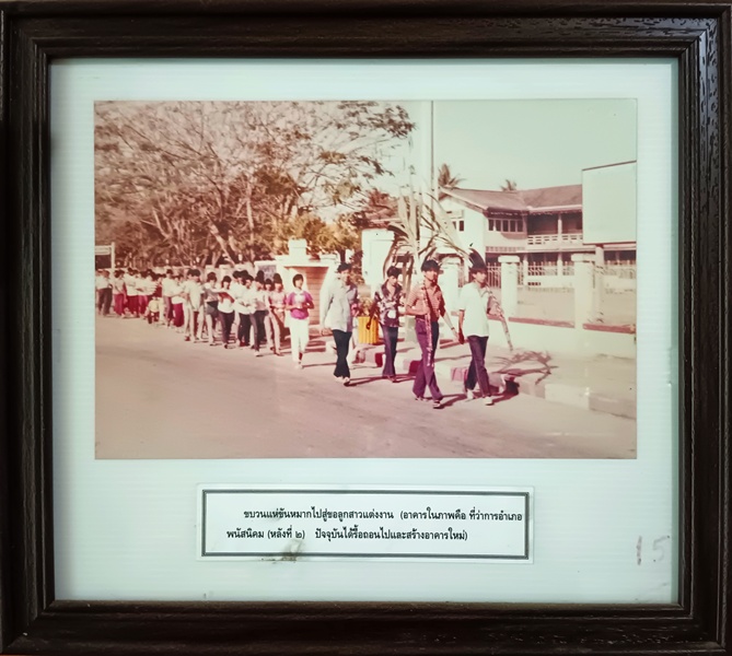 ขบวนแห่ขันหมาก ข้อมูลจาก: พิพิธภัณฑ์อุทกมรดกท้องถิ่น ขบวนแห่ขันหมากไปสู่ขอลูกสาวแต่งงาน (อาคารในภาพคือ ที่ว่าการอำเภอพนัสนิคม (หลังที่ ๒) ปัจจุบันได้รื้อถอนไปและสร้างอาคารใหม่) แผนที่