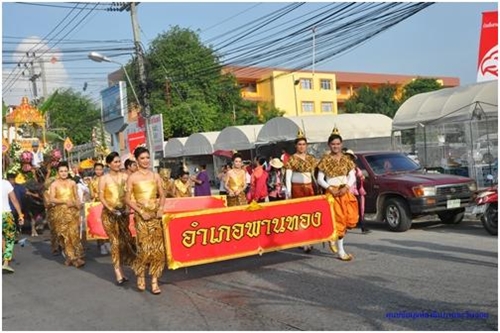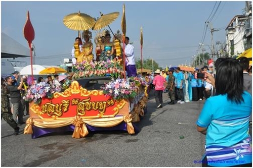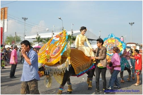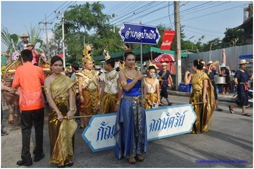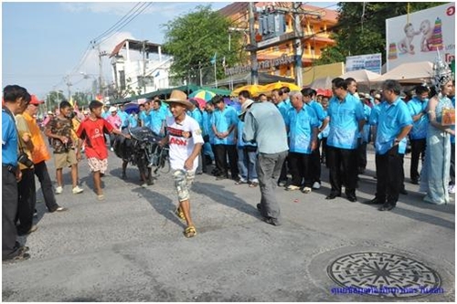 ๑. การแห่ริ้วขบวนงานประเพณีวิ่งควายจากหน่วยงานต่าง ๆ