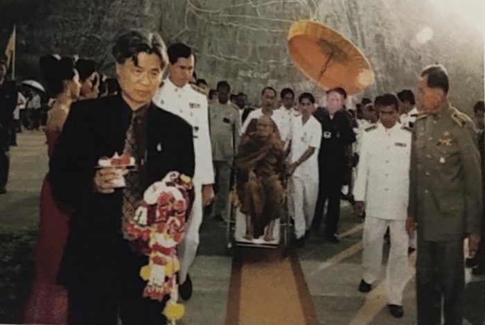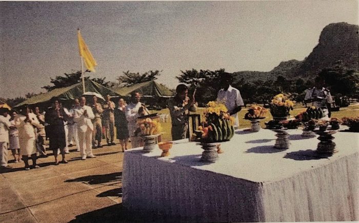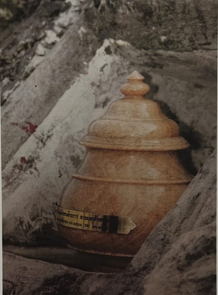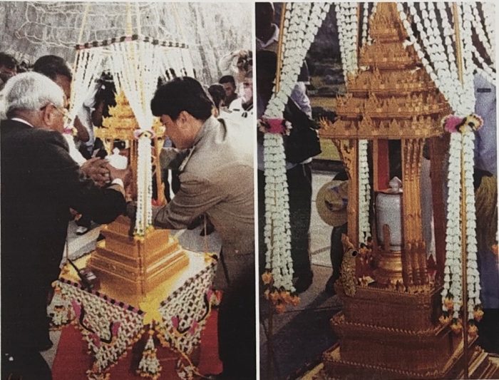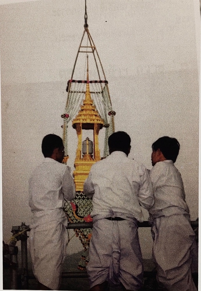 สมเด็จพระญาณสังวร สมเด็จพระสังฆราช สกลมหาสังฆปริณายก เสด็จทรงประกอบพิธีบรรจุพระบรมสารีริกธาตุ ณ หน้าผาเขาชีจรรย์ อำเภอสัตหีบ จังหวัดชลบุรี เมื่อวันที่ ๒๘ พฤศจิกายน พุทธศักราช ๒๕๔๔
