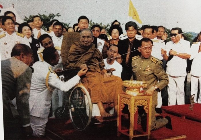 เมื่อบรรจุพระบรมสารีริกธาตุเสร็จแล้ว สมเด็จพระญาณสังวร สมเด็จพระสังฆราช สกลมหาสังฆปริณายกทรงถือสายสูตรซึ่งติดอยู่กับพระเนตร ทั้งสองข้าง