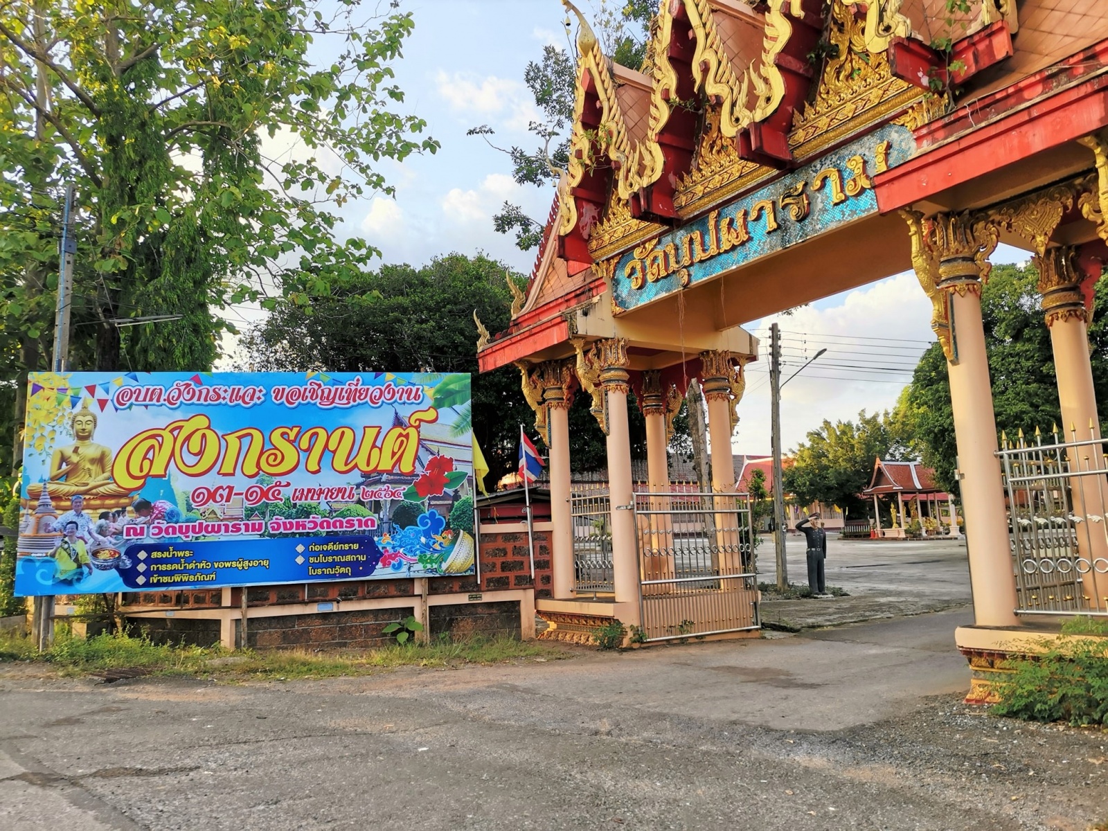 วัดบุปผาราม หรือเรียกอีกชื่อหนึ่งว่า “วัดปลายคลอง” เป็นวัดที่เก่าแก่ที่สุดในจังหวัดตราด สร้างขึ้นในสมัยกรุงศรีอยุธยา ประมาณปี พ.ศ. ๒๑๙๕ ราวรัชสมัยพระเจ้าปราสาททอง ก่อนที่จะสร้างวัดแห่งนี้ “หลวงเมือง” ผู้คิดสร้างวัด ได้ร่วมมือกับชาวบ้านเสาะหาพื้นที่ โดยสำรวจเรื่อยมาจนถึงบริเวณนี้ (ที่สร้างวัดในปัจจุบัน) ต่างพากันได้กลิ่นดอกไม้หอมตลบอลอวล แต่หาต้นไม้แหล่งกำเนิดกลิ่นไม่พบ จึงตกลงปลงใจสร้างวัดในบริเวณนี้ เพราะเชื่อว่านี่คือนิมิตหมายอันดี และพื้นที่สร้างวัดก็ตั้งอยู่บนเนิน เมื่อสร้างวัดขึ้นมาจะดูโดดเด่นเป็นสง่า จึงได้สร้างวัดขึ้นมาพร้อมกับตั้งชื่อว่า “วัดบุปผาราม” ที่หมายถึงสวนดอกไม้ หรืออารามแห่งดอกไม้
