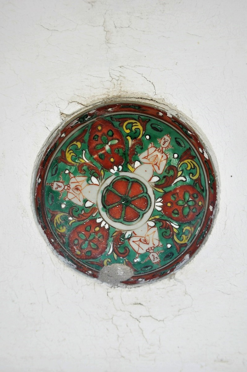 ด้วยเครื่องถ้วยเป็นรูปซุ้มสามเหลี่ยมหน้าจั่ว ตรงกึ่งกลางมีปูนปั้นรูปดอกไม้ประดับ บานประตูไม้มีลายประดับมุก บานหน้าต่างเขียนลายรดน้ำเป็นสายพันข้าวปัณฑ์ ภายในพระอุโบสถประดิษฐานพระประธาน ปางมารวิชัย และพระพุทธรูปปางต่างๆ ซึ่งล้วนแต่เป็นพระพุทธรูปปูนปั้นลงรักปิดทองศิลปะอยุธยาตอนปลายรัตนโกสินทร์ตอนต้น เสาร่วมในพระอุโบสถ เครื่องบนหลังคา ชื่อ และเพดานไม่มีการตกแต่งด้วยลวดลายปิดทองร้องชาย ที่ผนังภายใน