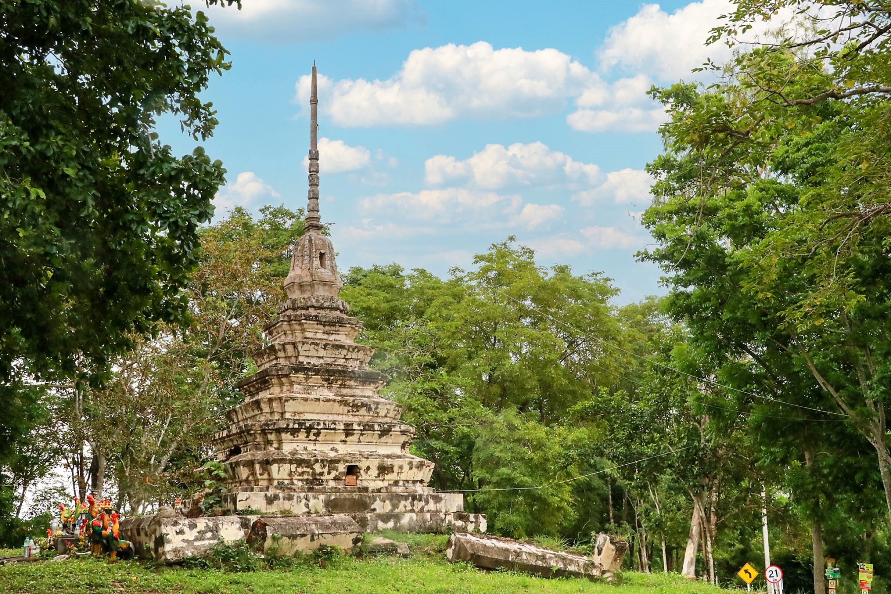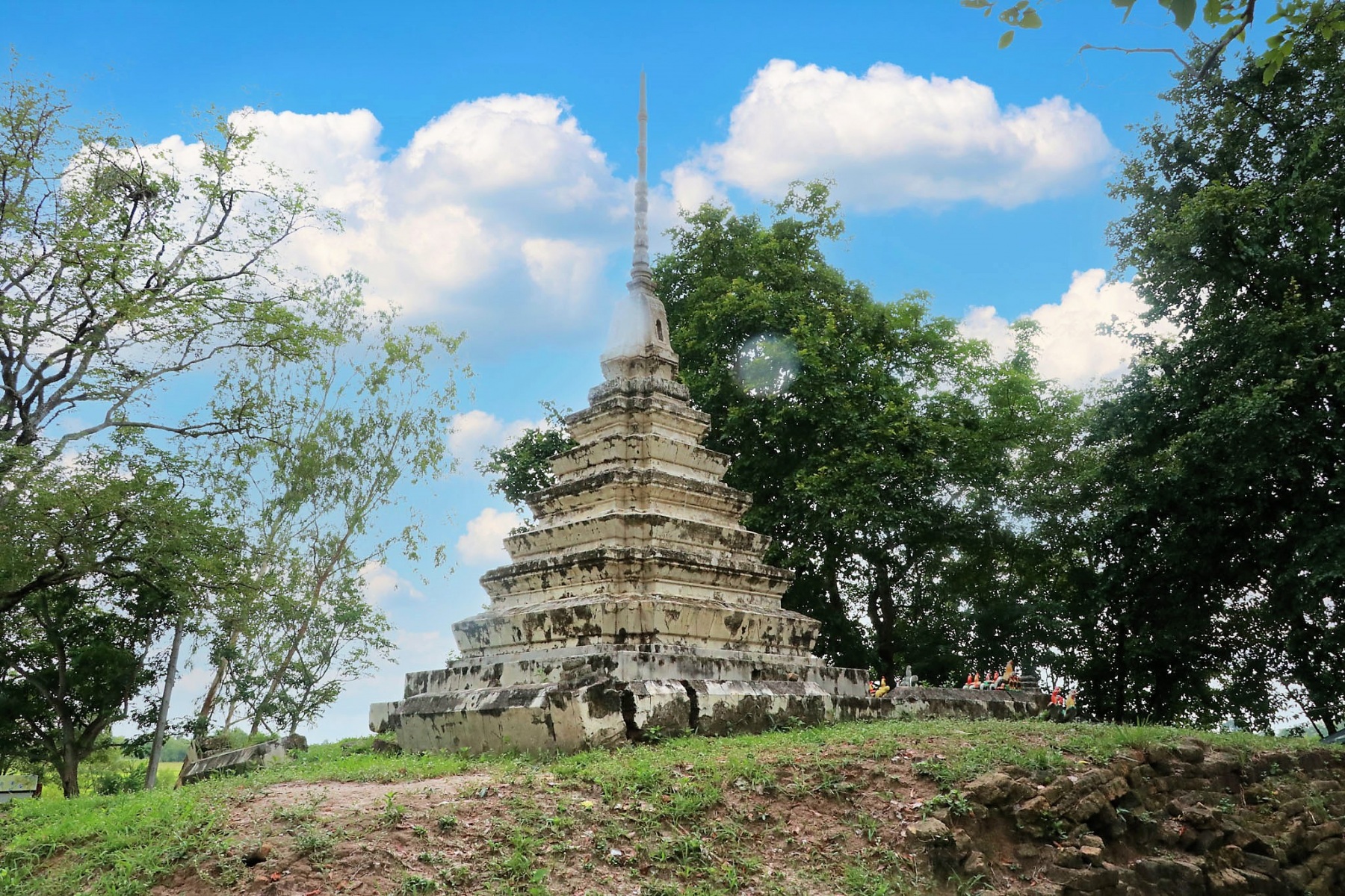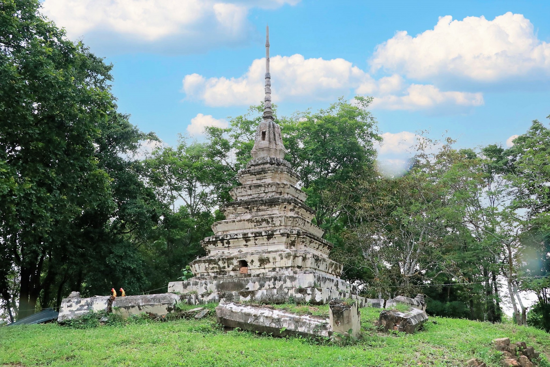 ได้มีการก่อสร้างเจดีย์บนเนินโบราณสถาน เป็นเจดีย์ทรงเครื่องอยู่ในผังย่อมุมไม้สิบสอง ประกอบด้วยฐานสิงห์ ๓ ชั้น รองรับ บัวปากระฆังที่เป็นบัวทรงคลุ่มและองค์ระฆัง ถัดขึ้นไปเป็นบัลลังก์ในผังสี่เหลี่ยม รองรับส่วนยอดที่ประกอบด้วยบัวทรงคลุมเถา ปลียอด และลูกแก้ว โดยรอบเจดีย์มีลานดาดปูนหรือลานประทักษิณ