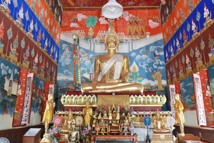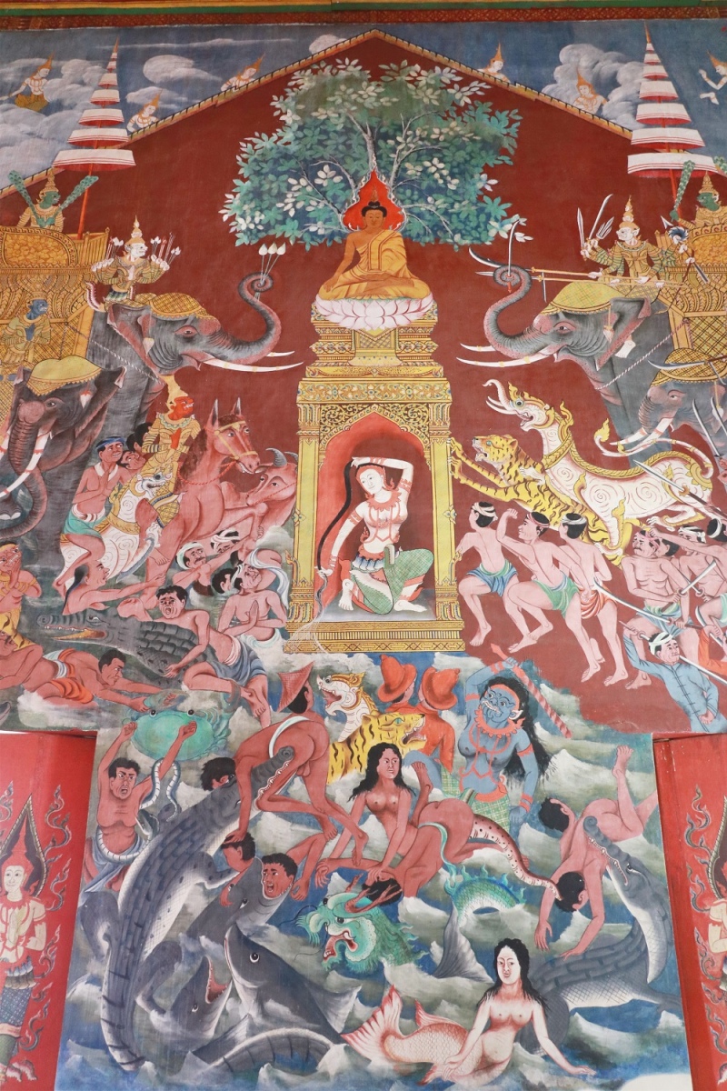 ประโลมล่อพระพุทธองค์ผนังด้านทิศตะวันออกเป็นภาพตอนมารวิชัย ผนังทางด้านทิศใต้เป็นตอนเสวยวิมุตติสุขจนถึงตอนเสด็จดับขันธ์ปรินิพพาน