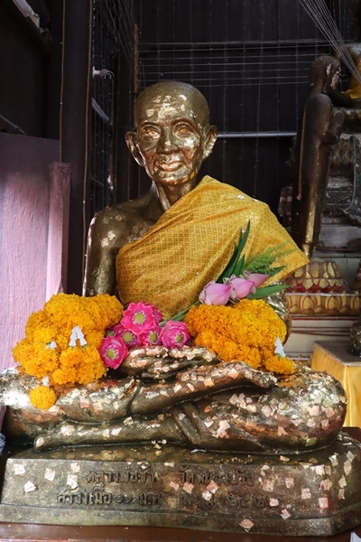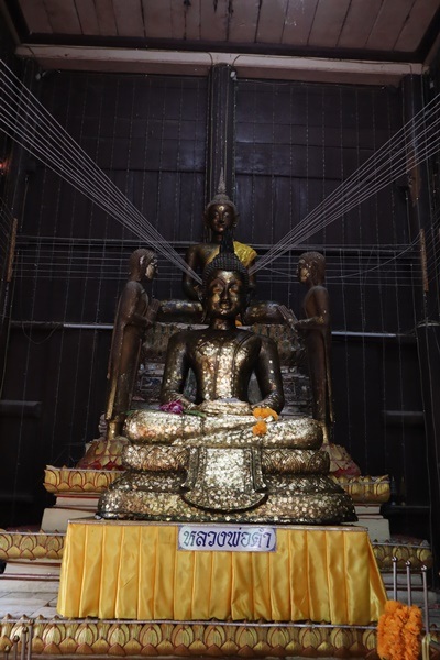 พระวิหาร (หลังเก่า) ลักษณะเป็นวิหารไม้ ผังรูปสี่เหลี่ยมผืนผ้าขนาดความกว้าง ๕ เมตร ยาว ๗ เมตร หันหน้าทางด้านทิศตะวันออก หลังคาเครื่องไม้ทรงไทยลดชั้น ๒ ชั้น ๆ ละ ๓ ตับ แต่เดิมมุงด้วยกระเบื้องดินเผาปลายแหลมแต่โครงหลังคาไม้ชำรุดหักพังจึงมีการซ่อมแซมเมื่อปี พ.ศ. ๒๕๒๙- ๒๕๓๑ การซ่อมพระวิหารมีการเปลี่ยนเครื่องไม้และกระเบื้องเป็นกระเบื้องเคลือบปลายแหลม หลังคาประธานมุงด้วยกระเบื้องเผาสีแดง ส่วนหลังคามุขลดมุงด้วยกระเบื้องสีเขียว นอกจากนี้ยังเปลี่ยนช่อฟ้าใบระกาและหางหงส์จากไม้เป็นปูนปั้น หน้าบันทั้งสองข้างทำขึ้นใหม่เป็นปูนปั้นลายเครือเถาแล้วเปลี่ยนเสารับโครงหลังคามุขหน้า-หลังเป็นเสาคอนกรีตตกแต่งด้วยลายปูนปั้นสาหร่ายรวงผึ้งทั้งหน้า-หลัง ตัวพระวิหารมีฐานเชียงก่ออิฐถือปูนรูปสี่เหลี่ยมและฐานสิงห์ ๑ ชั้น รองรับฝาผนัง ซึ่งเป็นฝาไม้กระดานตีชิดกันแนวตั้ง มีบันไดเตี้ย ๆ เป็นทางขึ้นด้านหน้าพระวิหาร ด้านหน้าและหลังพระวิหารมีประตูด้านละ ๒ ประตู ฝาพระวิหารด้านข้างมีหน้าต่างด้านละ ๔ ช่อง และมีคันทวยไม้ค้ำรับชายคา พื้นภายในพระวิหารปูด้วยหินอ่อนทั้งหมด ส่วนท้ายพระวิหารมีฐานชุกชีปูนปั้นลงรักปิดทองประดับกระจกมีอิทธิพลของศิลปะจีนประดิษฐานพระพุทธรูปปูนปั้นลงรักปิดทองปางมารวิชัย มีอัครสาวกปูนปั้นประทับยืนพนมมืออยู่ด้านหน้ารอยพระพุทธบาทซึ่งสร้างเมื่อประมาณปี พ.ศ. ๒๔๕๖ และมีประติมากรรมรูปเหมือนของหลวงพ่อช้าง