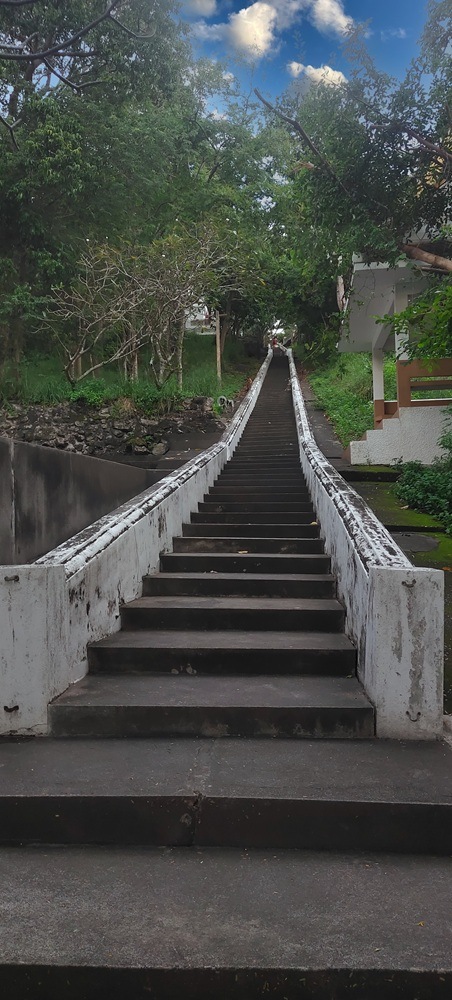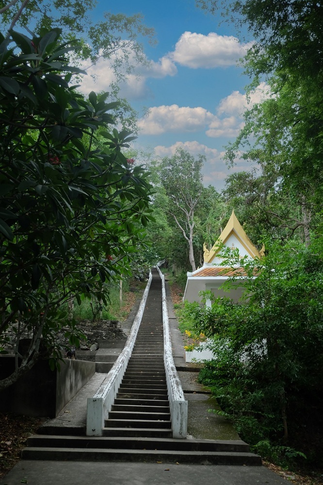 บันไดแก้ว เป็นโบราณสถานที่มีการสร้างเป็นระยะ ๆ ระยะที่หนึ่งจากเชิงเขาขึ้นไปถึงพระวิหารล่าง ระยะที่สองแบ่งเป็นช่วง ๆ จากสำนักชีถึงศาลาราย
