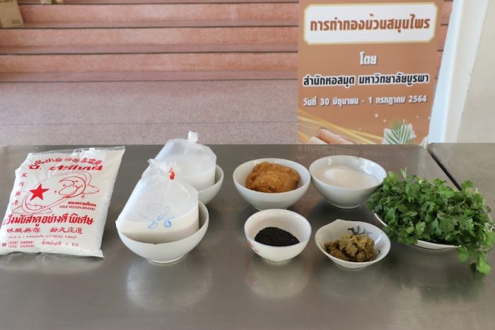 ขนมทองม้วนสมุนไพร ตำบลวัดหลวง อำเภอพนัสนิคม เป็นขนมโบราณที่ หอม กรอบ อร่อยกินเพลิน และมีประโยชน์จากสมุนไพร