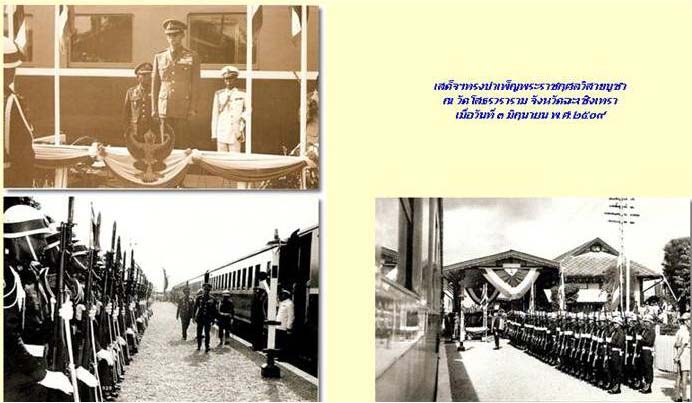 จากเว็บไซต์ chumphon-tcs.com ให้ข้อมูลว่า ในหลวงเสด็จฯ ทรงบำเพ็ญพระราชกุศลวิสาขบูชา ณ วัดโสธรวราราม จังหวัดฉะเชิงเทรา เมื่อวันที่ 3 มิถุนายน พ.ศ. 2509 โดยเสด็จทางรถไฟ