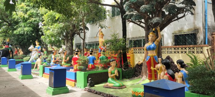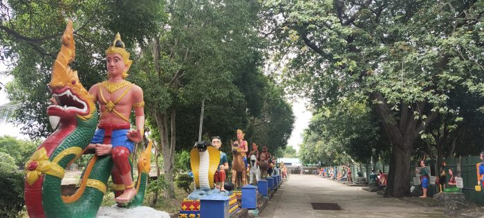 เจ้าแม่กวนอิม เทพแห่งศาสนาพราหมณ์หรือ 18 อรหันต์ และรูปปั้นองค์เทพต่างๆ ทางวัดแสนสุข แนะนำว่า ให้เดินเข้าทางนรก ออกทางสวรรค์เพื่อความเป็น