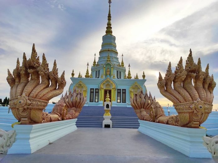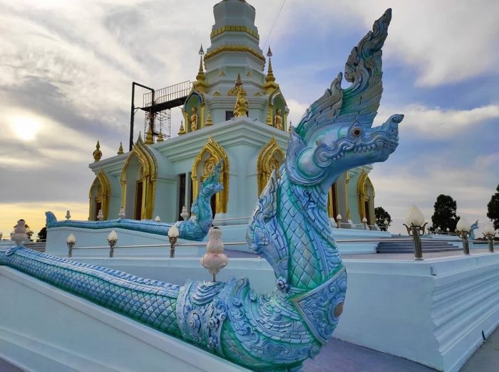 วัดแสนสุขวิสุทธิวราราม หรือชื่อที่คุ้นหูกันดีอีกชื่อก็คือ วัดแสนสุข เป็นวัดที่มีความเก่าแก่มากกว่า ๓๐ ปี แต่เมื่อก่อนเป็นแค่วัดมีพระภิกษุจำพรรษาเท่านั้น ก่อนที่จะเปลี่ยนมาเป็น วัดแสนสุข อย่างในปัจจุบันนี้ และอีกสิ่งที่น่าสนใจของวัดนี้ ก็คือ พระมหาเจดีย์ ที่มีความสวยงามมากๆ ที่ตกแต่งด้วย พญานาค ภายในยังมีพระประธานสีทององค์ใหญ่ สวยเด่นเป็นสง่า ล้อมด้วยเสา ๘ ต้นสีทองอร่าม เพดานสูงโล่งโปร่งสบาย ทำให้ภายในเจดีย์มีความสง่างาม