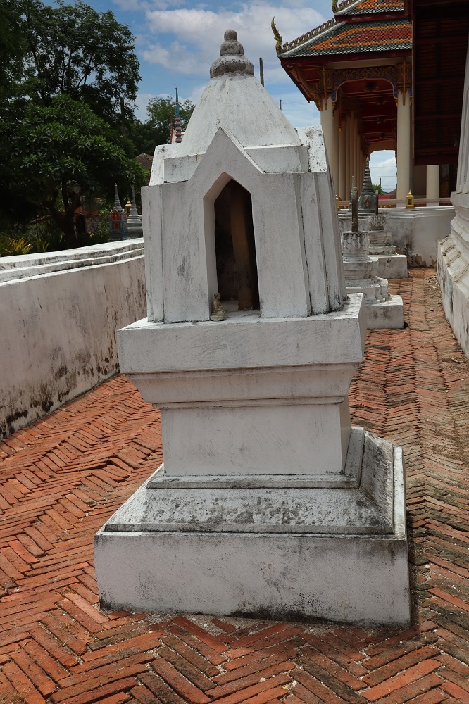 สิ่งสำคัญภายในวัด ได้แก่อุโบสถ (หลังเก่า) หันหน้าไปทางแม่น้ำ ด้านทิศตะวันตก ซึ่งเป็นเส้นทางคมนาคมหลักในสมัยนั้น เจดีย์ประธาน ฐาน ๘ เหลี่ยม