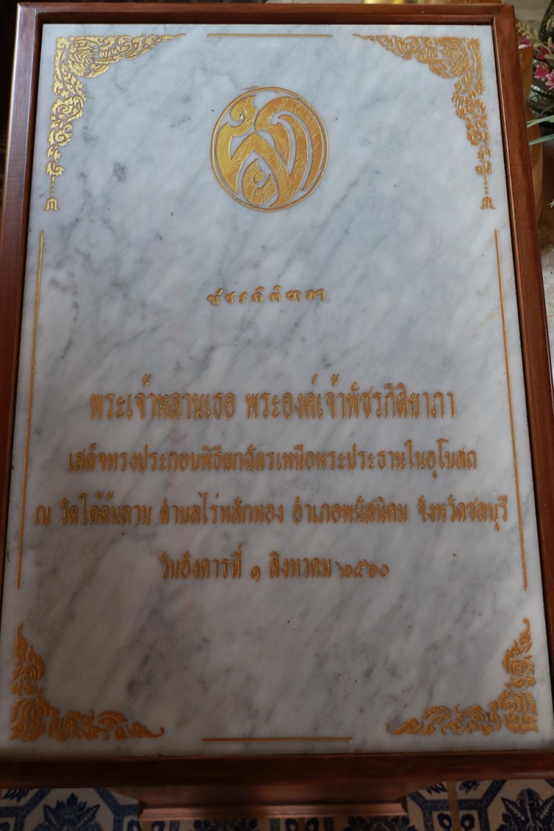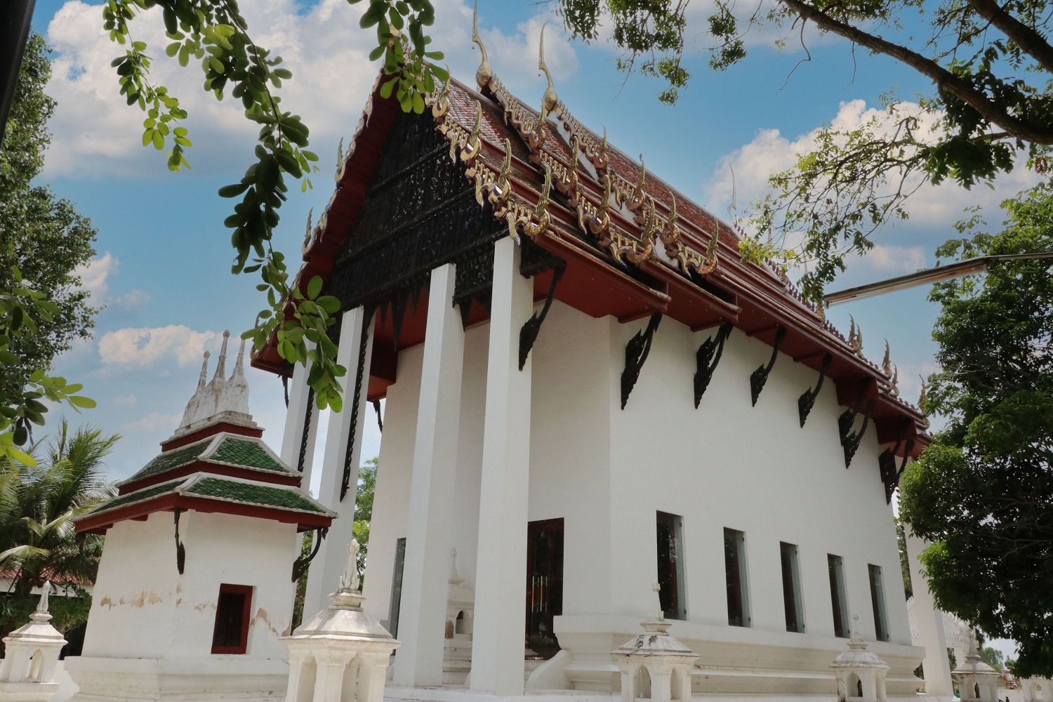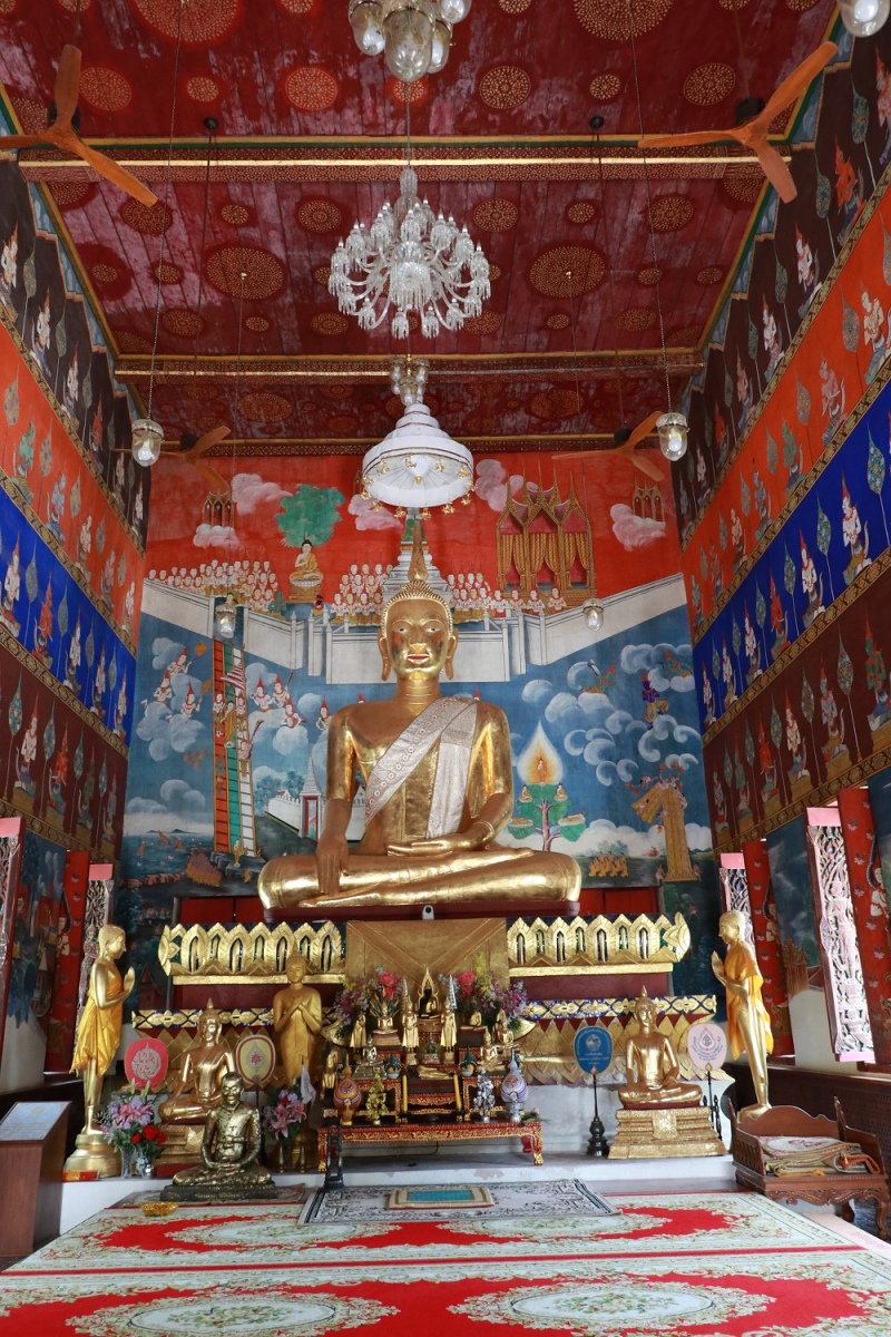 พระอุโบสถตั้งอยู่บนฐานบัวลูกแก้วอกไก่สูง มีมุขลดทางด้านหน้าและหลัง ผนังพระอุโบสถก่ออิฐถือปูนมีช่องหน้าต่างด้าน ละ ๕ ช่อง บานหน้าต่างไม้แกะสลักประดับ กระจกสีเป็นภาพเทพารักษ์ประทับยืนบนแท่น มียักษ์แบก โดยเทพารักษ์หันหน้าเข้าหากันเป็นคู่ ๆ มีประตูทางเข้า-ออกทางด้านหน้าและหลัง ด้านละ ๒ ประตู บานประตูไม้แกะสลักประดับด้วยกระจกสีเป็นภาพยักษ์ยืนอยู่บนหลังสิงห์ ประดับด้วยลายพันธุ์พฤกษา ตรงกึ่งกลางระหว่าง ผนังด้านหน้า และหลังมีซุ้มประดิษฐานใบเสมา ทรงสถูป ภายในพระอุโบสถประดิษฐานพระพุทธ รูปปูนปั้น ปางมารวิชัย ด้านข้างมีพระอัครสาวกประทับยืน ทำด้วยโลหะ พื้นพระอุโบสถปูด้วยกระเบื้องเคลือบลายคราม